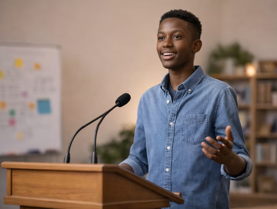 Students grow as communicators and leaders through life skills, public speaking, collaboration, and confidence-building experiences.